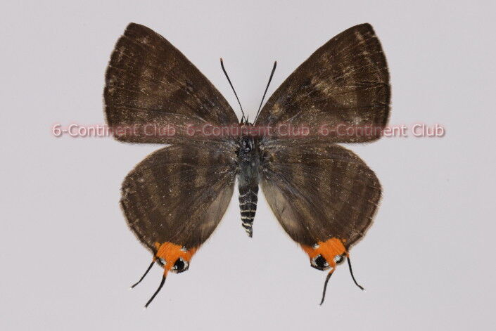 ♀の翅表の地色は黒色で、♂に見る濃紺色部を欠く。前翅は無紋であるが、裏面の黒線条斑が薄く現れる。後翅表面には♂と同様に肛角に橙色斑があり、中に銀白色を伴う黒斑がある。この黒斑は♂でも銀白色を伴うが、♀の方が明瞭に現われる個体が多い。