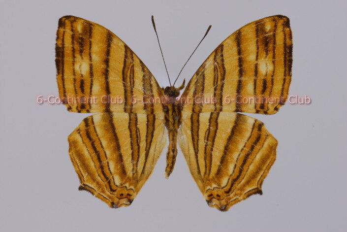 翅表の地色は茶橙色~茶黄色で、黒褐色の線条斑が縦に並ぶ。後翅第3脈に短い尾状突起を現わす。翅裏の斑紋構成は翅表と殆ど同様であるが、地色は翅表よりやや明るい色調になる。