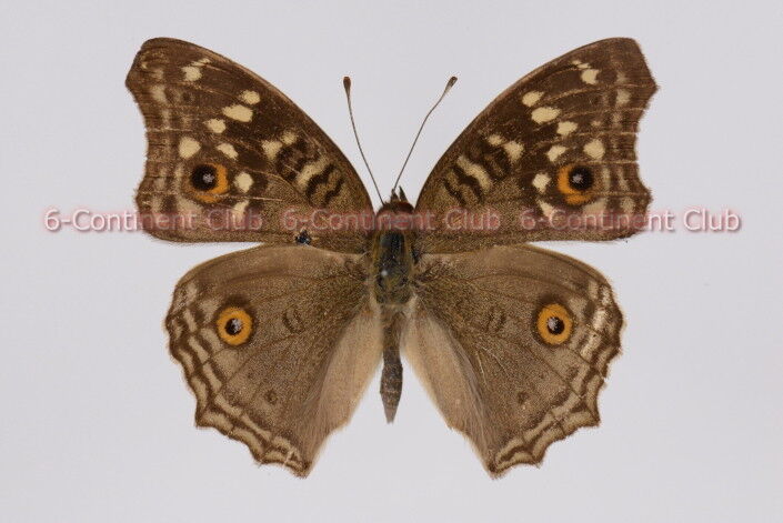 翅表の地色は褐色で、前翅亜外縁に灰斑が不連続に並ぶ。外中央と中央にも灰斑が縦に不連続に並び、その間第2室に大きな眼状紋が現れる。また、中室にも灰斑が配置する。後翅表面の外縁に灰斑が2本縁取り、第2、5室に眼状紋が現われる。第5室の眼状紋は大きく明瞭である。