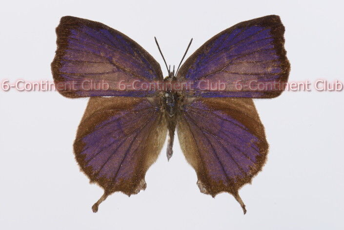 ♂の翅表の地色は暗紫色。前翅の前縁と外縁は1~2mmの黒縁が縁取り、後翅前縁の黒縁は幅広く、下方の外縁から内縁まで1~2mmの黒縁が続く。後翅第2脈の先に細長い尾状突起が延び、第1脈、第3、4脈の先に短い突起を現わす。また、後翅肛角に半円状の突起がある。