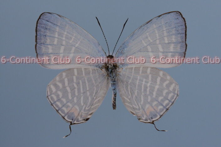 ♂の翅表の地色は明るい淡水色で、前翅前縁の翅頂付近と外縁側はやや水色味が強くなる。また、水色味が強い所の外縁は極細い黒縁が縁取る。前後翅共に、翅裏の白条が浮き出るように淡く現れる。