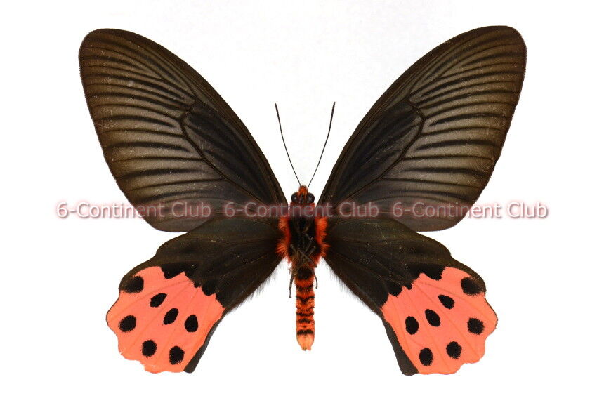 裏面前翅の地色は黒褐色で、翅脈の両側に淡色部が現れる。裏面後翅の地色も黒褐色で、中央から外縁まで鮮やかな紅色部が配置し、中に黒斑が2列に配置する。
