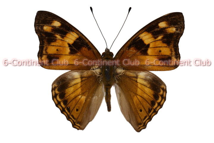翅表の地色は黒色で、前翅亜外縁に2個の橙斑、中央に橙部が斜めに配置し後縁の橙部とつながる。中央の橙部第2室内に黒点が現れる。後翅表面中央に橙帯が縦に配置し、第2室に不鮮明な眼状紋が現れる。また、後翅外縁には橙線が2重に縁取る。