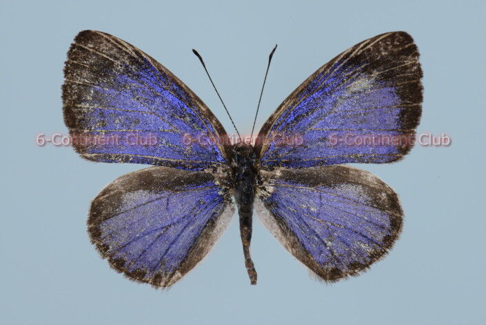 ♂の翅表はルリ色が広がり、前翅では翅頂部から外縁に黒縁が現われ、後翅では前縁から外縁、肛角、内縁と1周にわたり黒縁が現れる。翅裏は白色の地色にルリシジミ型の黒斑が現われ、後翅第7室の黒斑が目立って大きい。