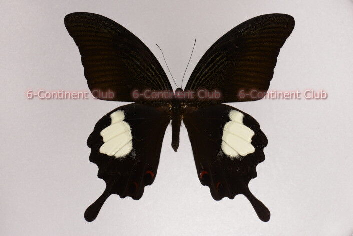 大型種。翅表の地色は黒色で、前翅は無紋。後翅表面は第4~7室に大きな白紋がある。肛角部に不鮮明な赤色の弦月紋がある。