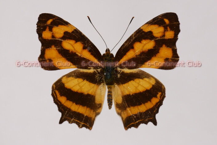 翅表の地色は黒褐色で、斑紋は橙色斑のミスジ型である。前翅表面は中室のこん棒状橙色斑と、前縁から中室端、亜外縁の翅頂側と後縁側にそれぞれ橙色斑が現われる。後翅は中央と亜外縁にそれぞれ橙色帯があり、外縁に細い橙色線条が配置する。翅裏の地色は黄褐色であるが、褐色の線条や斑紋が多様に現われ、複雑な斑紋をみせる。前翅裏面中央から後翅にかけて、褐色の線条が斜めにはしる。後翅裏面の尾状突起の根元には、淡青白色の斑紋がある。
